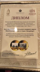 🎖️В рамках мероприятия Дому офицеров Ленинградского военного округа был вручен диплом за работу в области патриотического воспитания, представленную на XIX Открытом Всероссийском конкурсе «ЗОЛОТОЙ СОКОЛ 2025»