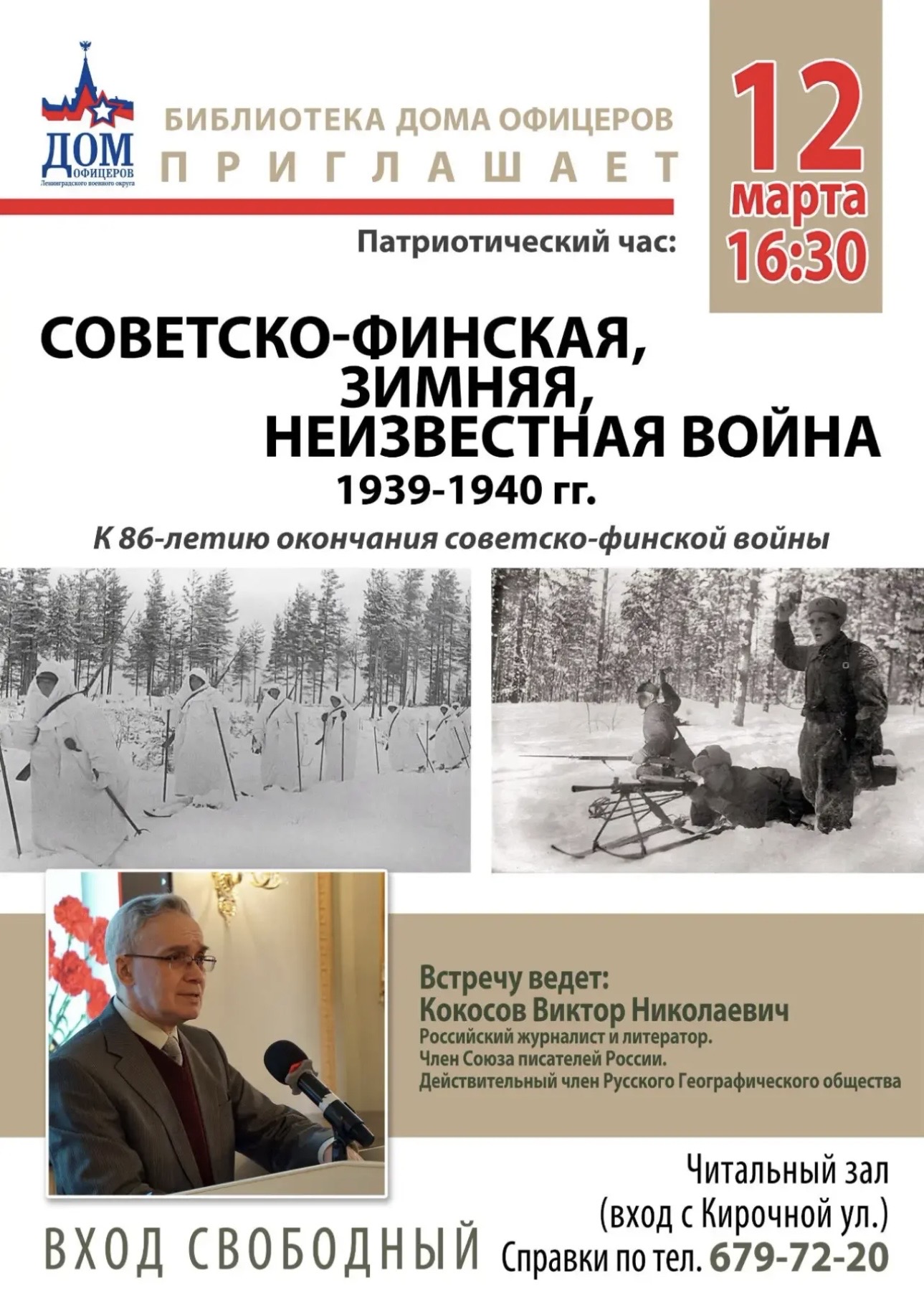 « Все Мероприятия Это мероприятие прошло. Патриотический час к 86-летию окончания советско-финской войны Март 12 @ 16:30 - 17:30 « Золотые хиты 90-е и 2000-ые Показ документального фильма » + Календарь Google+ Экспорт в iCal Подробности Дата: Март 12 Время: 16:30 - 17:30