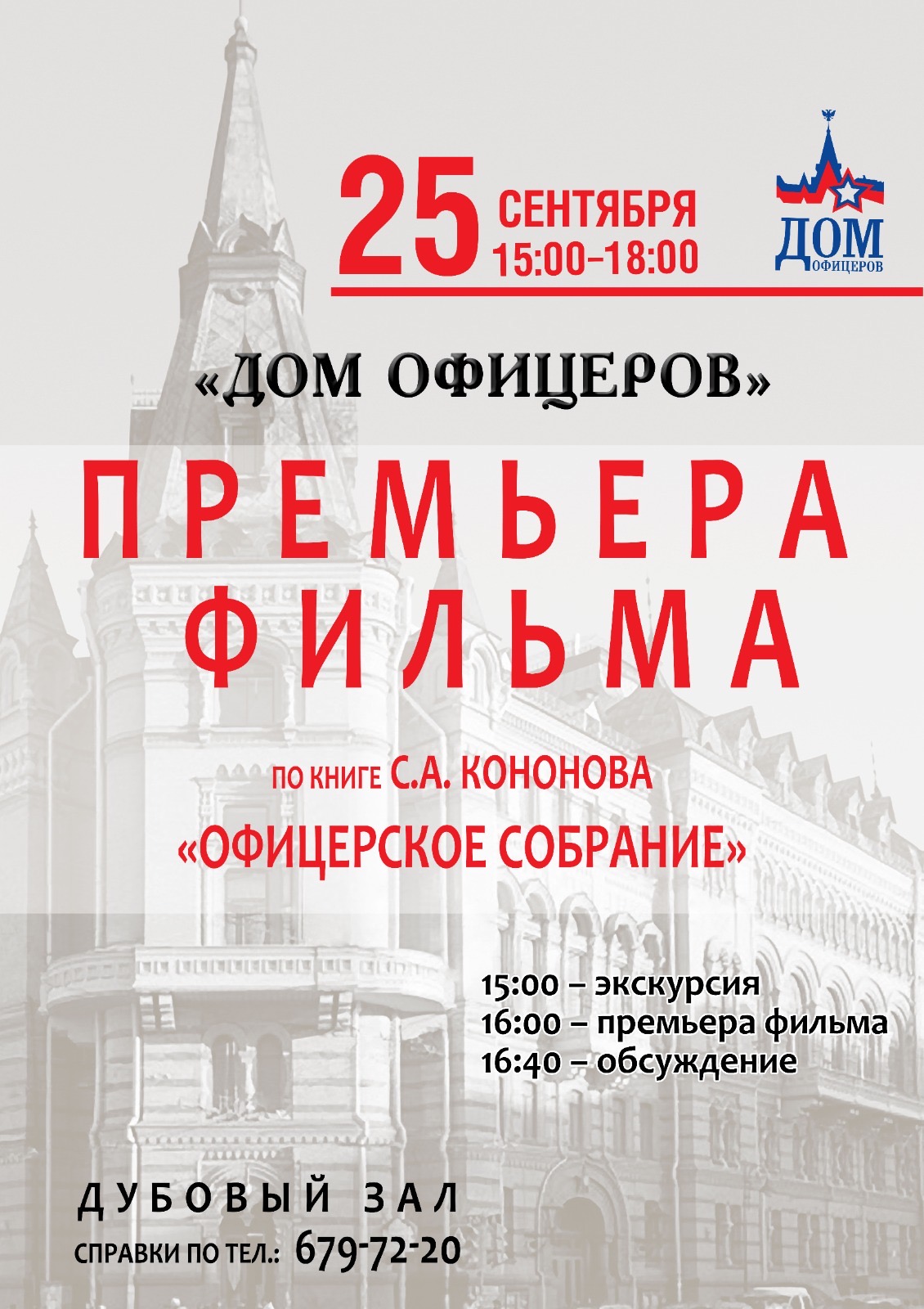 « Все Мероприятия Это мероприятие прошло. Премьера фильма по книге С.А. Кононова «Офицерское собрание» Сентябрь 25 @ 15:00 - 18:00 « Просветительский проект «Скажем обману нет» Концертная программа «Человек больше войны» » + Календарь Google+ Экспорт в iCal Подробности Дата: Сентябрь 25 Время: 15:00 - 18:00