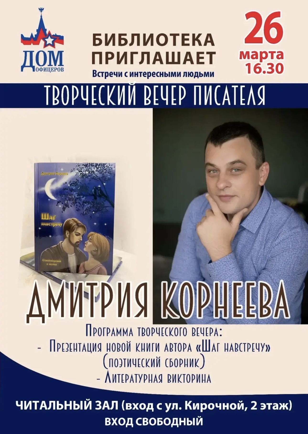 « Все Мероприятия Творческий вечер писателя Март 26 @ 16:30 - 17:30 « Всемирный день поэзии + Календарь Google+ Экспорт в iCal Подробности Дата: Март 26 Время: 16:30 - 17:30