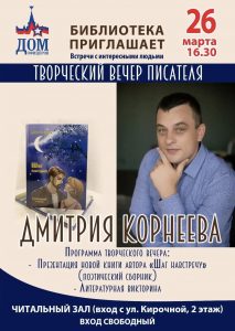 Предстоящие Мероприятия Мероприятия Search and Views Navigation Найти Мероприятия Событие Views Navigation Просмотреть как Список Месяц День Мероприятия Search Мероприятия Из Поиск « Предыдущее Мероприятия Март 2026 Открытие выставки «ЗЕМНОЙ ЗАЩИТНИК» Март 21 @ 17:00 - 18:00 Узнать больше » Всемирный день поэзии Март 23 @ 18:00 - 19:30 Узнать больше » Творческий вечер писателя Март 26 @ 16:30 - 17:30 Узнать больше » + Экспорт мероприятий